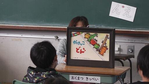 〇1年生…紙芝居「かけっこ どん」野菜たちの運動会のお話でした。