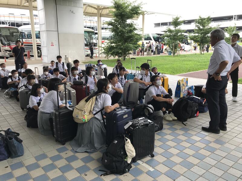明日の修学旅行到着時、雨天が想定されるため、到着場所を変更させていただきます。