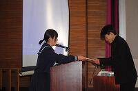 12月24日(水)2学期前半の終了の全校集会を行いました。最初に今年最後の校長先生の話があり、「ありがとう」という言葉が日常生活の中でいかに大切で、人の心を豊かにするかということを話してもらいました。その後、表彰を行い、中体連の陸上や、先日行われた男子硬式テニス団体戦の県大会優勝の表彰を行いました。今年1年、生徒の皆さん、保護者の皆様、学校を盛り上げ、たくさんのご協力ありがとうございました。2026年もよろしくお願いします。