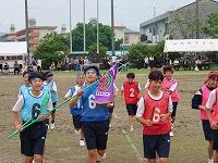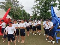 5月18日(日)に加久藤中学校では、第79回体育大会が開催されます。現在、昼休みや放課後を利用して団長を中心に毎日熱心に練習に取り組んでいます。4月17日には結団式が行われ、3年1組が青団、3年2組が赤団に決まり、団長とリーダーを中心に大きな声での練習が早速始まりました。今年は校歌や若い力など、体育大会で歌う歌も声の限界まで出して、すでに声がかれている3年生の生徒もみられます。是非、当日は生徒の全力の動きをご覧になってください。