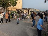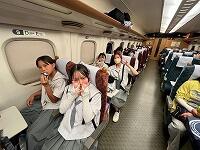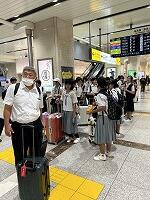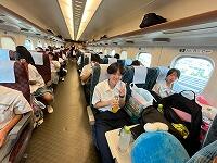 八代駅に着きました。初めて新幹線に乗る人も多いようですが、笑顔の中に緊張した様子も見られます。これから広島駅まで約2時間です。あっという間の時間かもしれませんが、新幹線から見える様々な景色を目にして欲しいです。