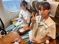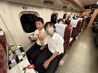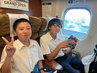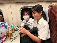 当初、予定していた飛行機での帰校が新燃岳の噴火により、飛行機が福岡空港に着陸となり、急遽16:23分大阪発の新幹線で八代駅に向かうことになりました。そこからバスで約1時間、加久藤中着は21時頃になる予定です。それにしても新幹線の中でも2年生元気ですね。