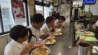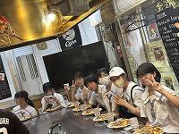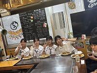 いよいよ広島に到着しました。まずは昼ご飯の「広島お好み焼き」を食べている様子です。焼きそば入りのボリュームたっぷりのお好み焼きを食べて、この後平和学習もがんばってください!