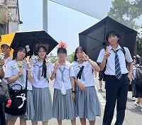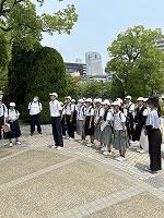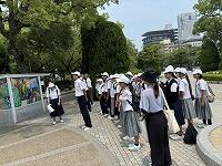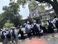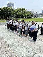 昼食を食べ終えた2年生の皆さんは、平和公園に到着した模様です。まずは自分たちがつくった鶴を奉納し、平和を願い、原爆で尊い命をなくされた方々へ手を合わせました。戦後80年の今年、あらためて、この学習を通して平和の尊さを学んで欲しいです。