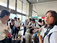 7月2日(水)今日は2年生が楽しみにしていた修学旅行です。6時過ぎには全員が集合し、出発式を行いました。たくさんの保護者の方に見送られ今日の最初の目的地・広島に向かいます。修学旅行の様子は1日何度もHPにアップしますので、是非ご覧ください!