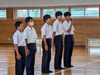 7月10日(木)今週末から始まる夏季中体連選手激励会を行いました。西諸県地区の予選を勝ち抜いた選手達が、それぞれ大会への抱負を語り、県大会優勝を目指して頑張る決意を表明してくれました。大会では、選手の皆さん、自分たちの力を存分に発揮してください。