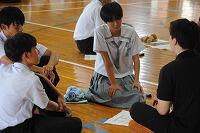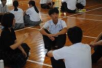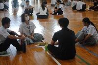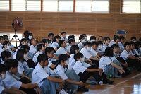 9月12日(金)飯野高校生18名をゲストティチャーに招いて、本校体育館で”ひなた場”を行いました。最初に高校生に自分の人生設計と、現在について紹介してもらい、アドバイスを受けながら本校の3年生も自身の将来への道筋を考えることができました。教えていただいた高校生に感謝し、この経験を自分の将来につなげて欲しいと思います。