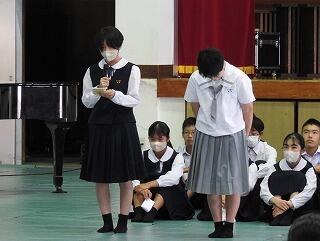 集会の最後には、9月に予定されている「生徒会役員選挙」のための選挙管理委員会が紹介され、生徒会役員選挙について説明がありました。また、生徒会長が積極的な立候補を呼びかけて、集会が終わりました。