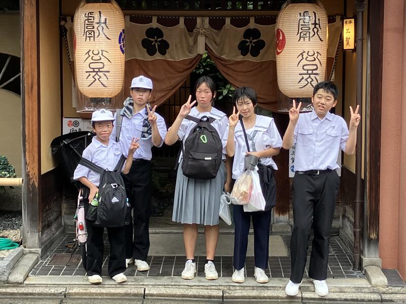 2年生の皆さんが、それぞれ班ごとに昼食を済ませ、昼からの目的地を目指すようです。すでに清水寺に着いた班も有、暑い中、順調に研修は進んでいるみたいです。