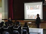 また、第2部では記念講演として、宮崎県海外協力協会より野邊節氏を招いて講演をしていただきました。国際協力に長年携わる中で経験してきた様々なことを分かりやすく話してくださいました。その中でも「夢≠職業」(夢は職業と同じではない)というお話に、生徒も職員も将来へ向けての希望をこれまでよりふくらませることができたように思います。わずか1時間足らずの講演でしたが、大変充実した講演となりました。