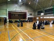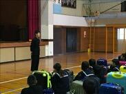 今回の避難訓練は、火山の噴火を想定したもので、空振や噴石などに対する対応を学習し、実際に各教室で避難行動を練習した後、体育館に移動し講師としてお招きしたえびの市役所基地・対策防災課の方のご講和を聞きました。
