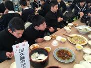 3年生にとっては最後の駅伝持久走大会でしたが、天気にも恵まれ、各学年、各学級懸命に走っていました。参加した生徒全員完走することができ、充実した大会となりました。そして終了後は、保護者の皆様が朝早くから作って下さった豚汁をおいしくいただきました。