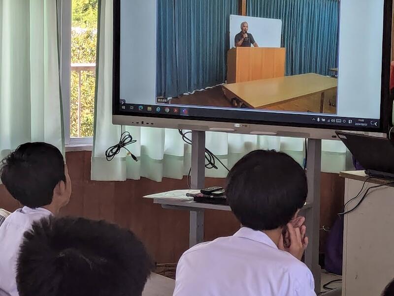 8月1日(木)本校では、平和学習を行いました。記録的な猛暑対策のため、3年生のみが図書室で、1,2年生はそれぞれTeamsを使ってオンラインで参加しました。講師を務めていただいたのは、過去、加久藤中のPTA会長も歴任された上谷川さんで、ご本人の加久藤中時代の思い出や、印象に残った出来事を交えて、お話しをしていただきました。その中でも対馬丸の悲しい出来事についての話は、大変ためになり、あらためて平和について考えさせられる日になりました。