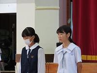 10月16日(水)2学期の始業式が行われました。最初に各学年代表による2学期の抱負が発表され、特に3年生代表は近づいてきた入試に対して万全の状態で臨みたいと力強く発表してくれました。その後、生徒会役員の退任式と任命式も行われ、旧生徒会長が、送別行事で卒業生を送り出すために生徒会役員で時間をかけて準備した思い出を語ってくれた一方、新生徒会長は公約にも掲げていた「タブレットを学校生活で有効に活用する」ことの具体的な取組を発表してくれました。2学期が加久藤中のみんなにとって楽しい毎日になるように頑張りましょう!