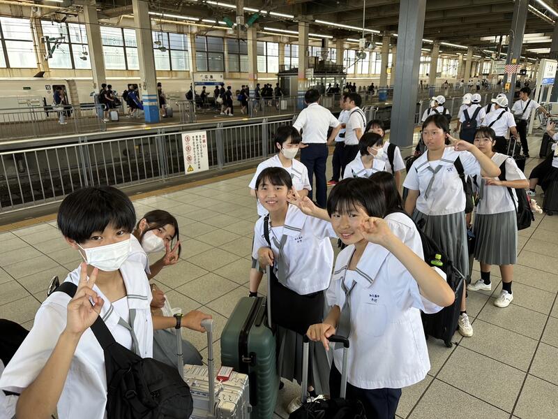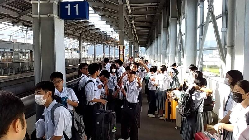 現在、2年生は原爆資料館での平和学習を終え、広島駅に着きました。これから京都駅を目指します。
