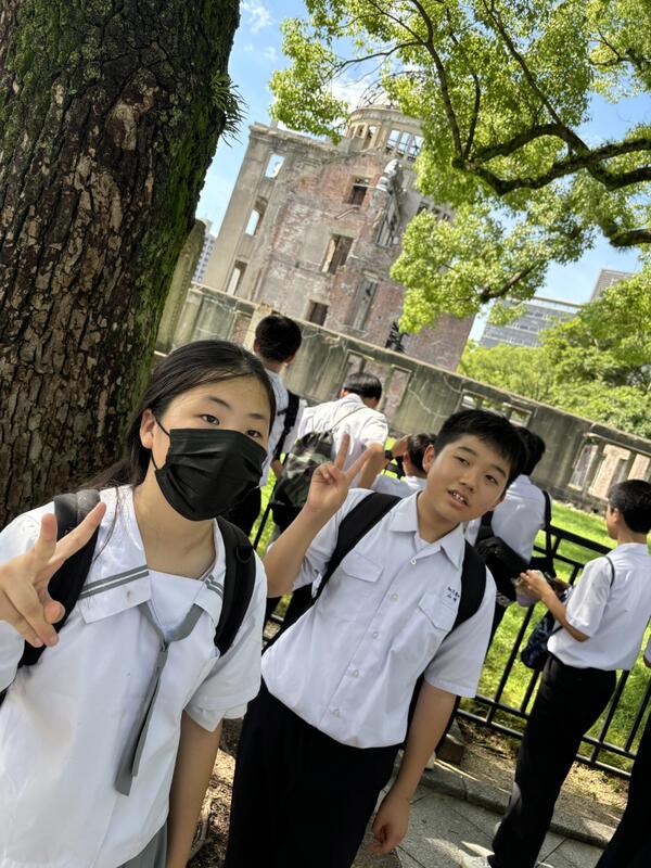 新幹線にのって約2時間、10時48分に広島駅に着きました。これからいよいよ平和学習のために原爆資料館に向かいます。何年か前の県立高校の社会科の入試問題に「なぜ、歴史を学ぶのですか」という問題が出題され、模範解答が「戦争などのあってはならない事件を学ぶことで平和の大切さを知るために学ぶ」とありました。貴重な経験を大切に生かして欲しいです。