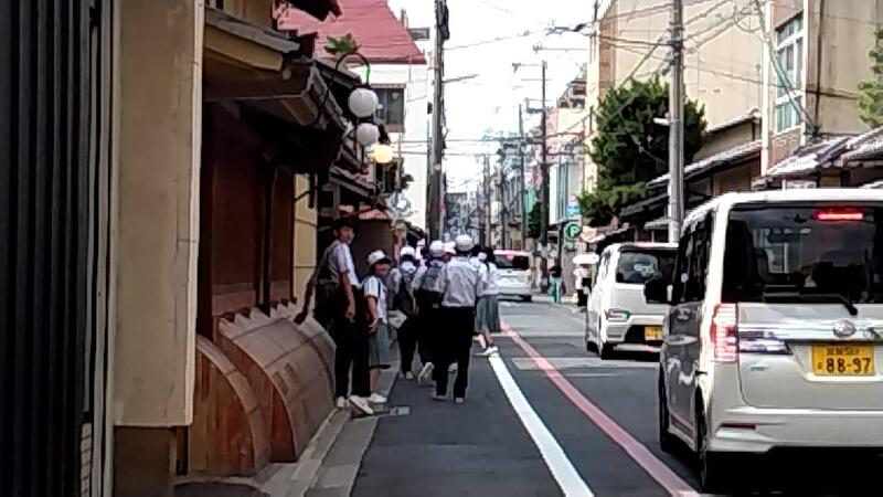 2年生の皆さんが、それぞれ班ごとに昼食を済ませ、昼からの目的地を目指すようです。すでに清水寺に着いた班も有、暑い中、順調に研修は進んでいるみたいです。