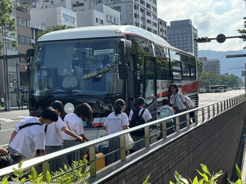 朝食を終え、8時30分、予定どおりにホテルをあとにし、京都の町へ出発しました。加久藤中の2年生が、町全体が世界遺産の京都の町から何を学び、何を感じてくれるのか楽しみです。自主研修での各地の様子も、届きしたいHPにアップしていきます。