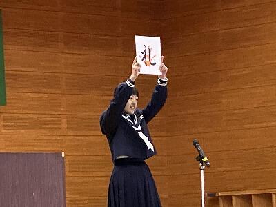 3年生の代表は、受験生の自覚をしっかり持ち、加久藤中学校の生徒の中心にふさわしい一日一日を大切にして中学校生活最後の一年を過ごしていくと、発表しました。