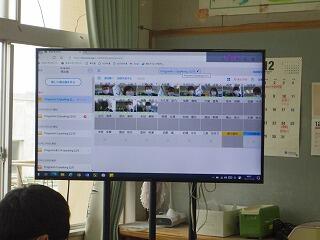 加久藤中では、効果的にタブレットPCを使う方法を研究しています。今回の授業では、タブレットの活用方法として、授業を英語を使ってまとめたものを、タブレットに録画記録し、次の時間で復習として活用するというものでした。