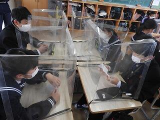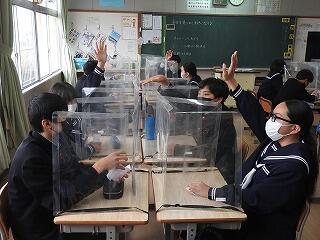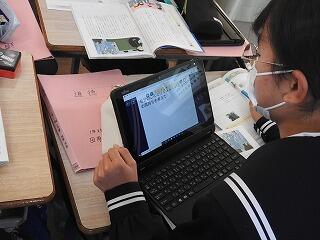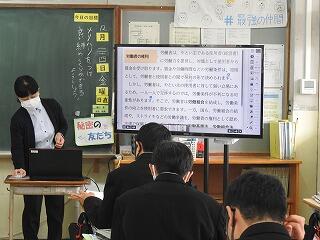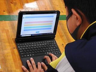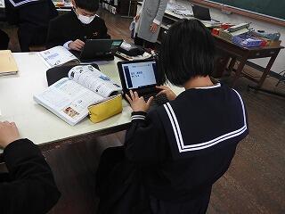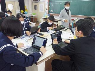 授業では、デジタル教科書も使いながら、インプット・アウトプットを意識した活動的な授業が展開されました。少し内容理解で難しい部分もありましたが、テンポのよい授業で全員がしっかりと取り組めていました。