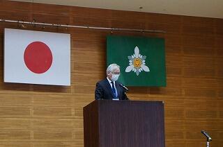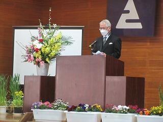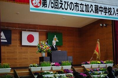 次に式辞で、校長から、「自分のことは自分でする」「思いやりの心をもつ」「日常に感謝する」「人のために動く」「本を読む」の5つを意識して中学校生活を送ってほしいというお願いをされました。