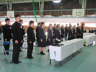 新任の先生方のあいさつ、生徒会長の歓迎のことば で新任式を終了しました。