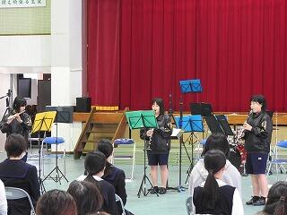 3月21日(月)に、加久藤中・飯野中・飯野高校、3校合同の吹奏楽合同演奏会が、加久藤中学校の体育館で行われました。