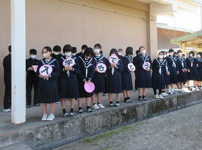 入学式が終わって校舎の前で3年生が歓迎してくれました。