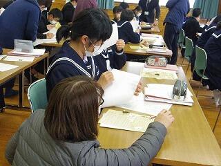 生徒たちは、道下さんと2人いる伴走者のひとり青山さんとのエピソードから「絆」について、一人一人が真剣に考えていました。