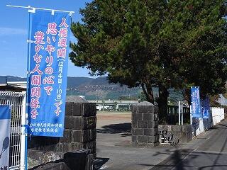 加久藤中学校では、12月1日(水)に人権に関する学習を行いました。本日より10日まで、職員は人権週間のワッペンをつけ、各教室にはミニのぼり旗を置いて、人権尊重を意識した取組を行っていきます。