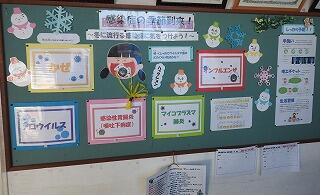 冬によく流行する感染症の種類と予防、感染を広げないために気をつけること等をわかりやすく表示しています。