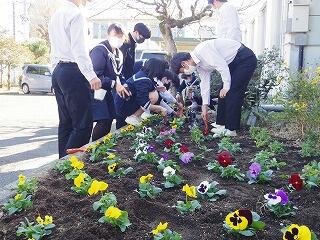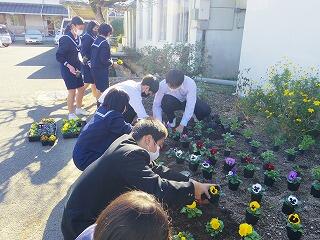12月9日(木)の昼休み時間に、生活美化委員会の生徒たちで花壇に移植しました。