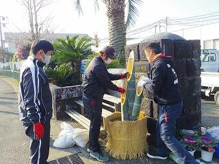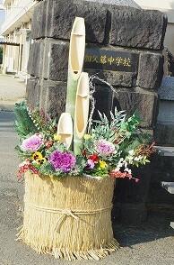 12月12日(日)、日曜日にもかかわらず、多くのPTA役員の皆さんが校門前に飾る門松を作ってくださいました。