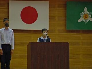式では、各学年の代表の生徒が、2学期の目標を発表してくれました。
