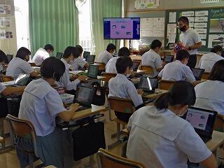 タブレットの操作に少し戸惑う生徒もいましたが、全員楽しそうに授業に取り組んでいました。