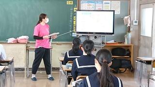 英語担当教諭が、ICT機器を活用した授業を行いました。