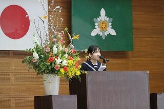 送辞は、生徒会長の2年2組 北田莉桜さんが述べてくれました。