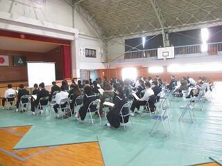 11月12日(木)6校時に、3年生とその保護者を対象とした高校入試説明会が行われました。内容は、今年度の入試の特徴や日程、諸手続き等についてでした。いよいよ3年生も自分の進路決定の時期に入りました。三者面談までにじっくり考え、後悔の無いように進路選択をしてほしいと思います。