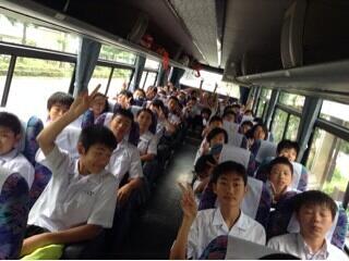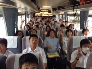 先程、2日間お世話になった「りょうぜん」さんに感謝の言葉を全員で伝え、USJに向けて出発しました。