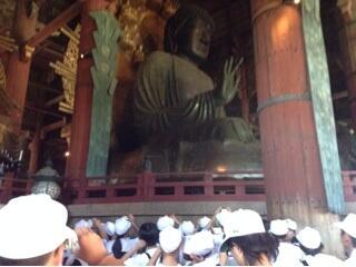 奈良東大寺にて、素晴らしいガイドさんのもと大仏について面白く学習ができ、鹿との楽しい時間を過ごすこともできました。これから京都へ向かいます。