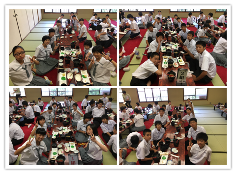 猛暑の中、体調を保って過ごせるか心配でしたが、どの班も素晴らしい笑顔で帰ってきました。修学旅行最後の晩餐を楽しみました。明日はUSJです。最後までてるてる坊主効果が発揮されますように。