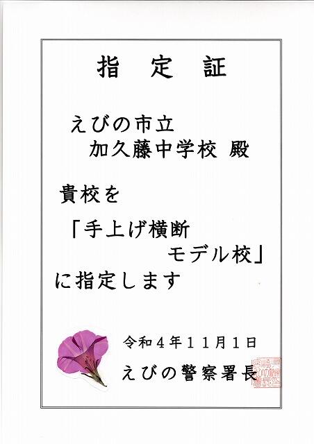 11月29日(火)、「手上げ横断モデル校」の指定証交付式が行われました。