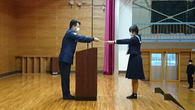 その後、生徒の代表として生徒会長に指定証が手渡されました。