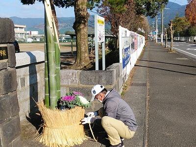 12月11日(日)、PTA役員の方々が正門前に門松を作ってくださいました。