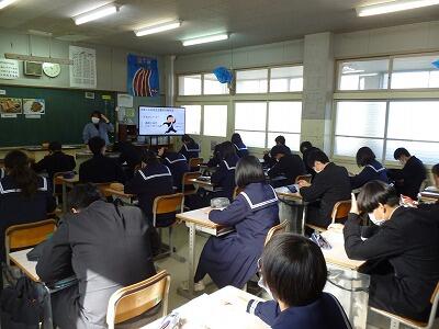 1,2年生には、食事の大切さや食事を摂るときの注意点について、プレゼンを使いながら丁寧に教えていただきました。