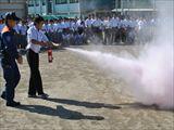 今回は生徒たちに事前に知らせることなく、移動教室も含む通常授業時に行い、より実践的な訓練をめざしました。突然の訓練だったのですが、全体的には落ち着いて行動できていたと思います。えびの消防署から来ていただいた消防職員より、注意するべき点について教えていただきました。生徒だけではなく、職員にとっても臨機応変な判断と行動を考えさせられる、非常に有意義な訓練になりました。