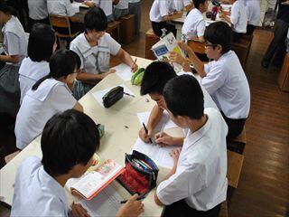 講演の中で、「こんな時どうしますか?」と友人関係の中でありがちな場面の例を出され、隣の人と相談したり話し合ったりしながら考えさせられるなど、生徒にも大変身近でわかりやすい内容でした。「いろんなことが分かった。こんな授業()があってよかった。またやって欲しい。」「悩んでいるのが自分だけじゃないと分かってほっとした」等々の感想がたくさんありました。保護者の参加が少なかったのがちょっと残念でした。