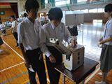 7月29日(水)午前中、3年生43名がバスにゆられ、飯野高校での『えびの市中学校集合学習会』に参加してきました。まず最初は、飯野高校の先生方による授業でした。1組の生徒たちは「英語」→「理科」、2組の生徒たちは「理科」→「国語」に取り組みました。それ以外に、家庭科の授業を受けた生徒や、少し授業内容の難しいチャレンジコースで受けた生徒たちもいました。次は先輩たちとの交流会でした。OBの3年生2人ずつで、1組2組にそれぞれ飯野高校の良いところ(【学習環境の良さ】【部活動に一生懸命】【みんなが仲良し】)を紹介してくれました。その後は部活動見学で、希望する部の活動している様子を見学しました。部によっては、一緒に活動させてもらったところもありました。最後に、吹奏楽部演奏や太鼓部演奏、ファッションショー紹介DVD視聴で終わりました。吹奏楽部演奏も素晴らしかったのですが、太鼓部の演奏は間近で見たために、とても迫力がありました。生徒たちにとっても有意義な半日だったのではないでしょうか?進路選択の一助になったことと思います。
