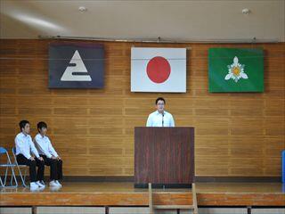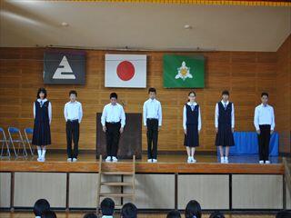 さて、始業式の後に生徒会役員の退任、任命式が行われました。3年生の生徒会役員のみなさんはこの日をもって引退し、2学期からは2年生を中心とした新体制になります。2年生、1年生の役員になったみなさんは、これまで先輩方が築きあげてきた加久藤中学校の良き伝統を引き継いで、ますます素晴らしい学校にしてほしいと思ます。